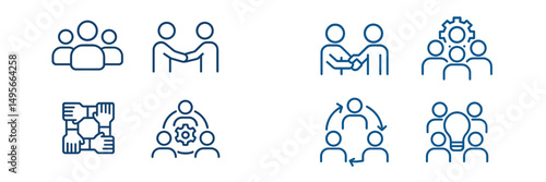 Icons representing teamwork, collaboration, and communication in a modern office setting