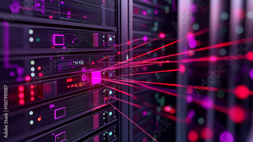 ICT - information and telecommunication technology and IOT - internet of things concepts. Diagrams with icons on server room backgrounds