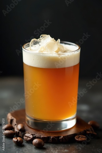 Icy Irish cream liqueur in glass with coffee beans, creamy, drink, irish cream