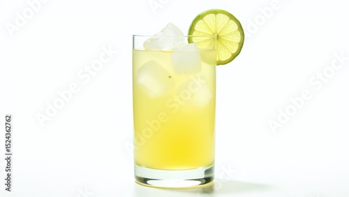 Icy lemon lime mixed drink summer vibes, Served in modern straight glass, Tangy and cold refreshment in ice, Transparent background cut-out