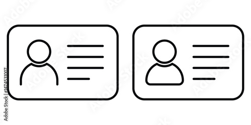 ID Card Icon Set – Employee, Driver License, and Identity Badge Symbols in Outline Style Vector