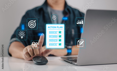 Idea for an action strategy. entrepreneur with a checklist. management of time.