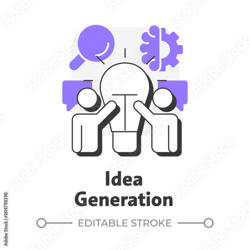Idea generation flat outline concept icon. Brainstorming, research, observation of feedbacks. Innovation funnel. Modern line illustration with purple glyphs. Conceptual visual. Easy to edit
