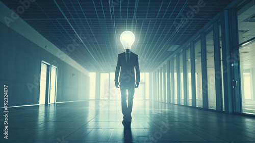Idea in action: businessperson with light bulb head concept