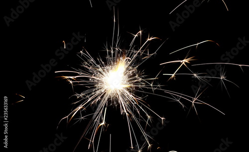 Ignited sparkler isolated on black background with clipping path