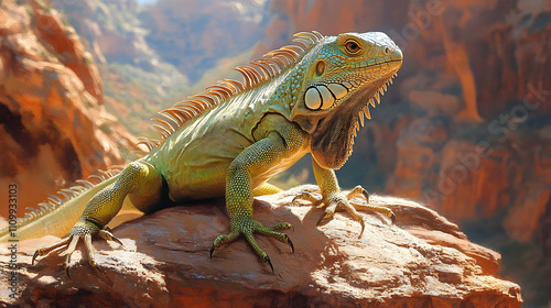 Iguana sunbathing on a rock grand canyon wildlife photography desert landscape close-up nature appreciation