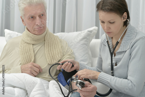 ill Senior man with caring daughter