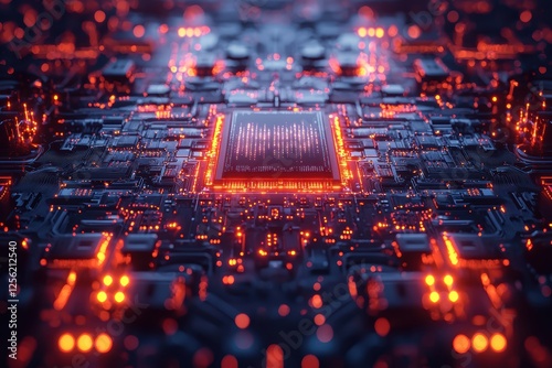 Illuminated ai processor circuitry technology hub digital close-up high-tech environment abstract view innovation in focus