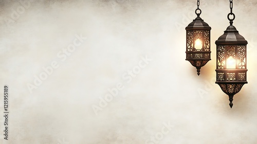 Illuminated Arabian Lanterns Hanging Against A Wall