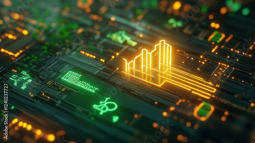 Illuminated bar chart depicting the significant reduction in carbon footprint over time.