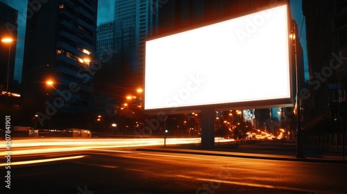 Illuminated Billboard Shining Brightly at Night in Urban Cityscape Creating a Vibrant and Lively Atmosphere