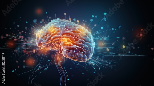 Illuminated Brain Neural Network Connections Displayed