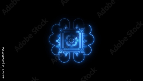Illuminated brain with processing chip design representing artificial intelligence and technology
