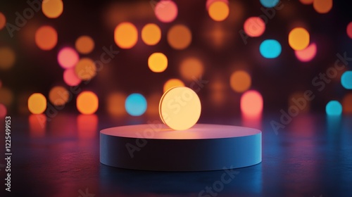 Illuminated Circle on a Cylindrical Platform Against a Bokeh Background