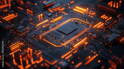 Illuminated circuitry: A technological depiction of advanced computing hardware