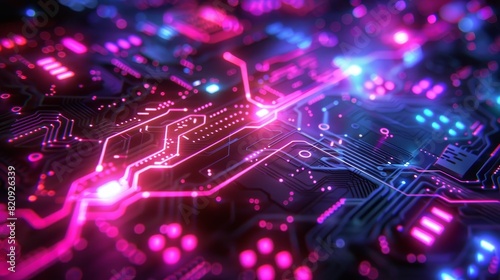 Illuminated Circuitry: Futuristic Abstract Background of Digital Circuits and Glowing Lines