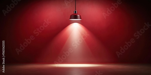 Illuminated Crimson Room A Single Pendant Light Casts a Dramatic Spotlight on an Empty Space, Perfect for Presentations or Dramatic Visuals