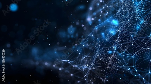 Illuminated digital depicting an abstract AI powered network with interconnected nodes and glowing blue pathways representing the advanced computing and communication system of the future