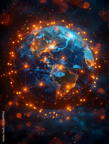 Illuminated Digital Globe with Pulsing Interconnected Network Lines Futuristic Global Concept