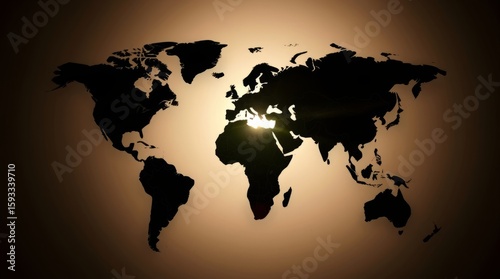 Illuminated Earth: A silhouette of the world map is dramatically lit, revealing the continents and oceans. The central focus is the globe's subtle form, symbolizing global connectivity.