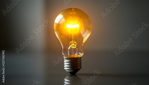 Illuminated Glass Lightbulb Glowing Brightly On Dark Surface