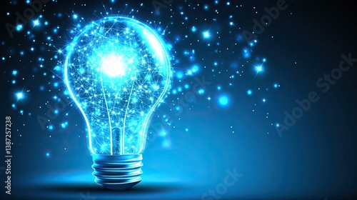 Illuminated idea bulb, concept, dark background, sparkling light particles