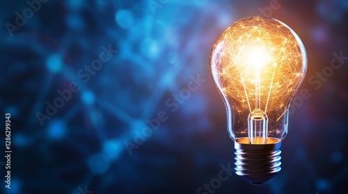 Illuminated Ideas: A Glowing Symbol of Innovation - Bright light bulb, network connections, innovation, technology, future. Symbolizing progress, creativity, and discovery