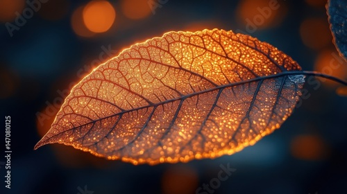 Illuminated Leaf Veins in Golden Light Macro Detailed Texture
