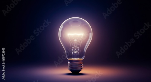 Illuminated light bulb glowing brightly against a dark, shadowy backdrop, radiating ideas