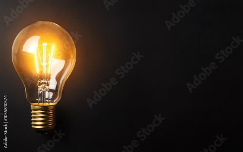 Illuminated light bulb on a black background reflecting innovation and creativity.