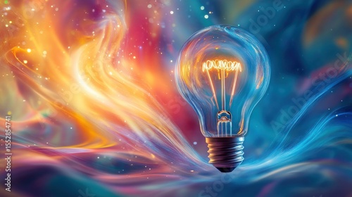 Illuminated lightbulb amidst swirling, vibrant colors