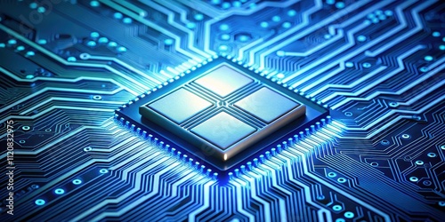 Illuminated microchip on circuit board representing 6g technology concept , technology, circuit board