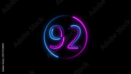 Illuminated number ninety-two within a glowing neon circle against a black background