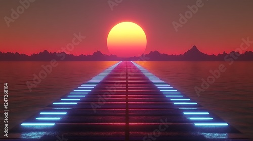 Illuminated Pathway Leading To A Sunset Over Mountains