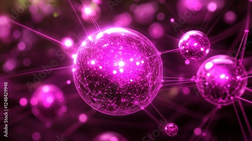 Illuminated Pink Spheres Connected By Lines Forming A Network