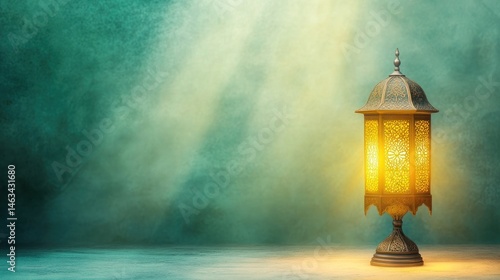 Illuminated Ramadan Lantern: A Festive Teal Background