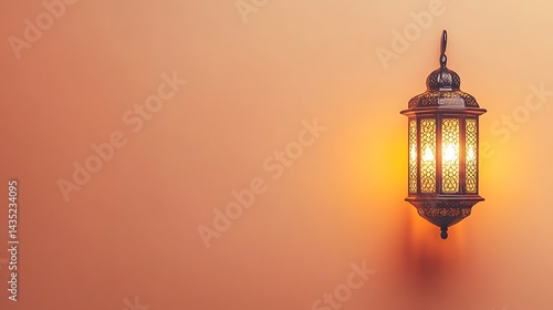 Illuminated Ramadan Lantern on Wall.
