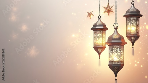 Illuminated Ramadan Lanterns Hanging With Stars