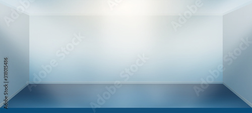 Illuminated realistic studio blue background. Presentation decorations. Room empty space. Showroom concept. Vector illustration