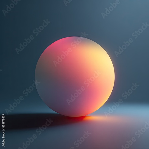 Illuminated sphere, gradient colors, dark studio, background blur, design element