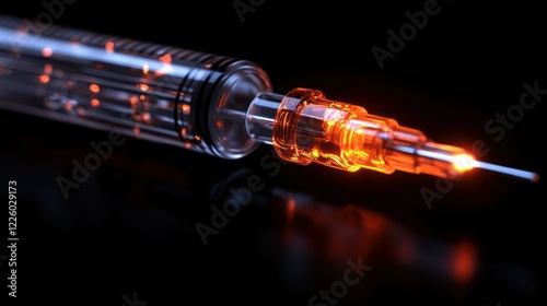 Illuminated Syringe: A Close-Up View of a Medical Syringe with Glowing Liquid