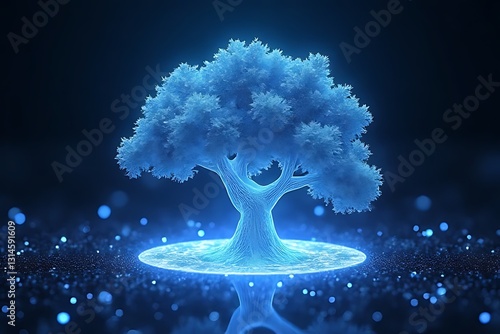 Illuminated tree of life enchanted forest digital art serene environment close-up view nature concept