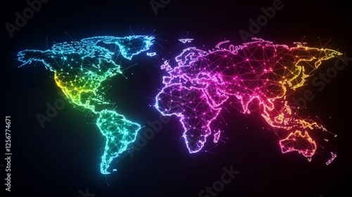 Illuminated World Map with Colorful Network Connections