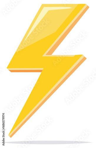 Illuminated Yellow Lightning Bolt Vector Illustration with Shadow