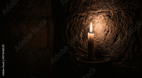 Illuminating Darkness: A solitary candle casts a warm glow, illuminating the textures of ancient stone. A powerful image capturing the interplay of light and shadow.
