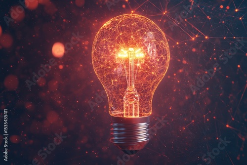 Illuminating idea, glowing incandescent lightbulb with intricate network