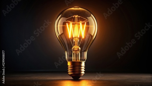 Illuminating Ideas A Glowing Filament Light Bulb on a Dark Surface