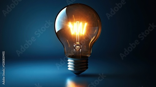 Illuminating Ideas: A Glowing Light Bulb on a Dark Blue Background