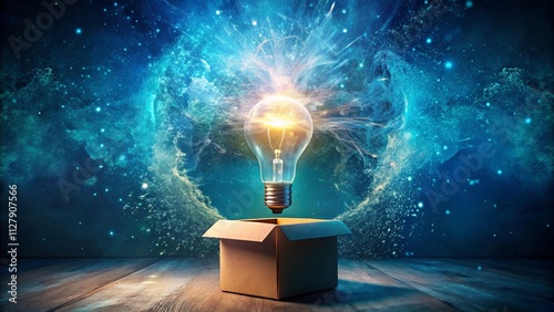 Illuminating Ideas A Glowing Lightbulb Emerging from a Simple Cardboard Box, Symbolizing Innovation and Potential