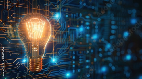 Illuminating Innovation: A Glowing Lightbulb Against a Circuit Board Background